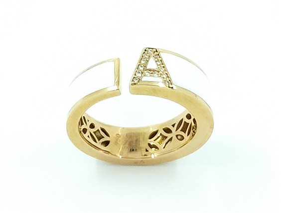 Anello in Oro Rosa 18 kt. con smalto bianco e Diamanti a taglio brillante con lettera "A" centrale da 0.05 ct.