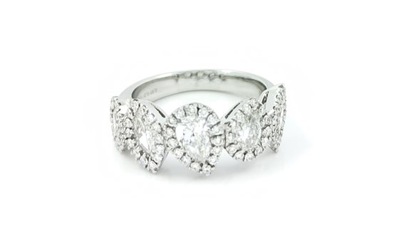 Anello Valentina Callegher in Oro Bianco 18kt. con Diamanti a Taglio Brillante da 0.46 ct. Centrale a Goccia 0.41 Ct. Navette 0.29 ct. Ovale 0.22 ct. Contorni 0.46 ct.