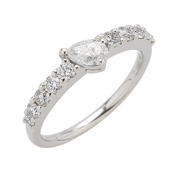 Anello Valentina Callegher in Oro Bianco 18kt. con pietra centrale 0.45ct a taglio a goccia, e diamanti a taglio brillante 0.31ct.