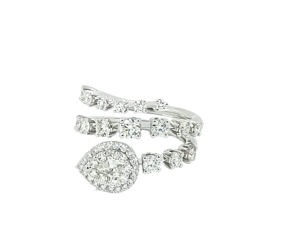 Anello Valentina Callegher in Oro Bianco 18kt con centrale a goccia 0.17ct e diamanti a taglio brillante 1.49ct g,vs.