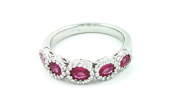 Anello Valentina Callegher in Oro Bianco 18kt. con Rubini Centrali 0.86ct. e cornice di diamanti a taglio brillante 0.22ct.
