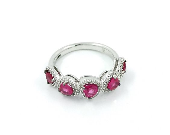 Anello Valentina Callagher in Oro Bianco 18kt. con Rubino di 5.60ct. a forma di Cuori Sfalsati in cornice di Diamanti 1.27ct.