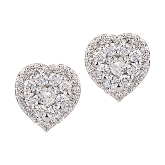 Coppia di Orecchini in Oro Bianco 18kt. con Diamanti a Cuore a taglio brillante 0.77ct.