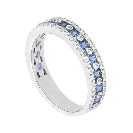 Anello in Oro Bianco 18kt, con Zaffiro 0.40ct e Diamanti a Taglio Brillante 0.72ct.
